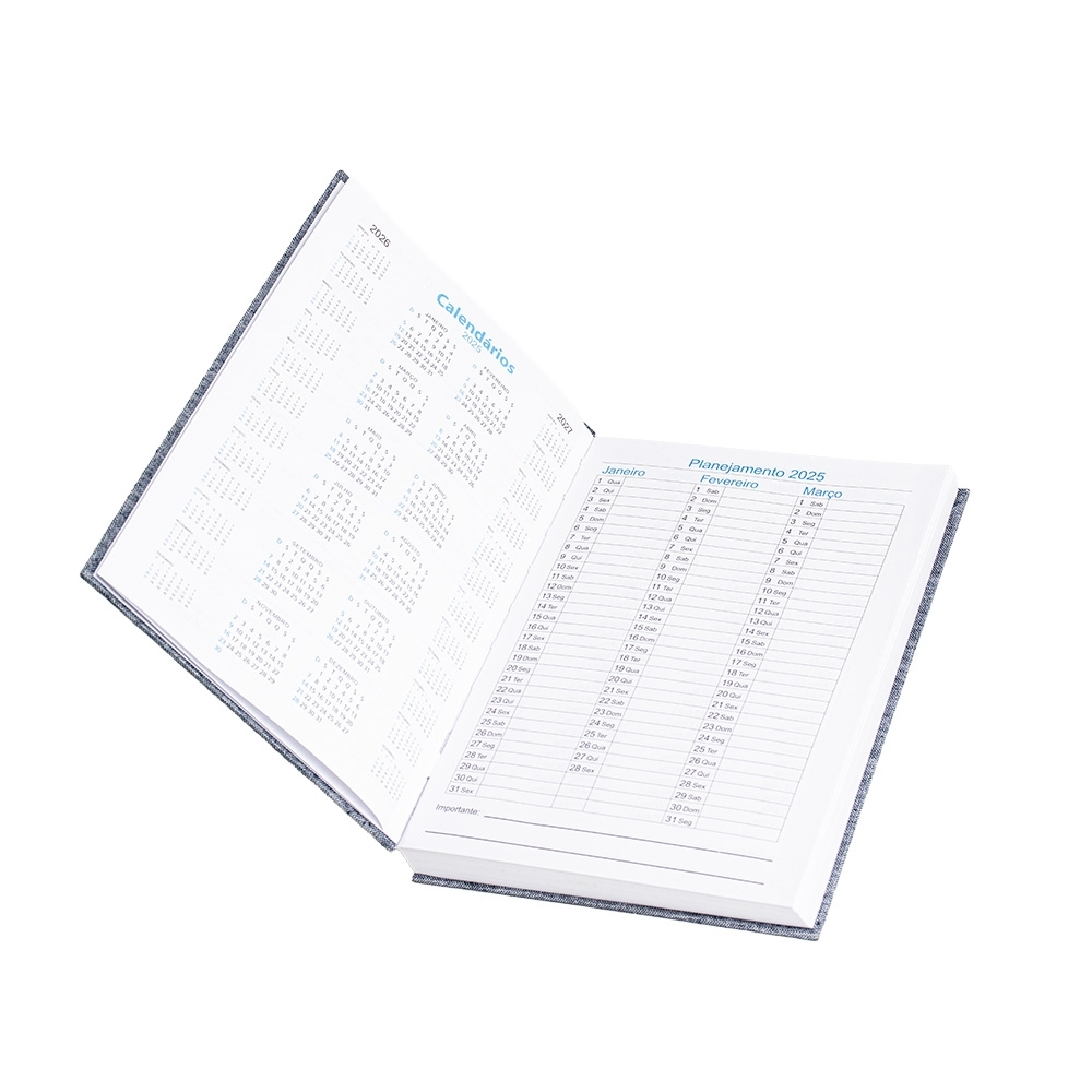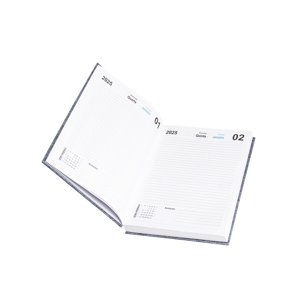Planeje seu dia a dia com a nossa agenda diária 2025 de linho. Organizar-se ficou ainda mais fácil! Contém folhas para dados pessoais, calendários 2025 à 2027, planejamento 2025 e DDI.