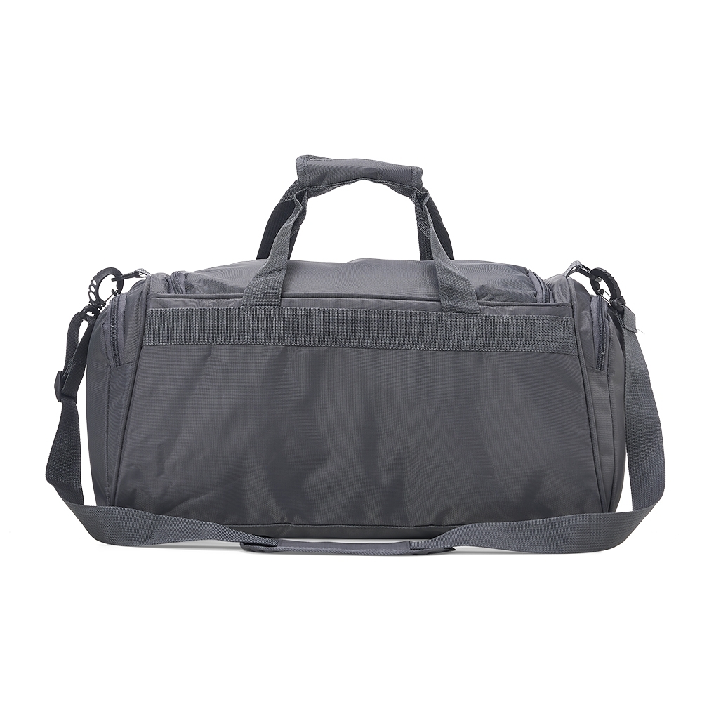 Bolsa de viagem de 30 litros em poliéster oxford resistente à água com quatro compartimentos. Contém alça de mãos com suporte de juntura, bases antiderrapantes e acompanha alça transversal com suporte de apoio para ombro.