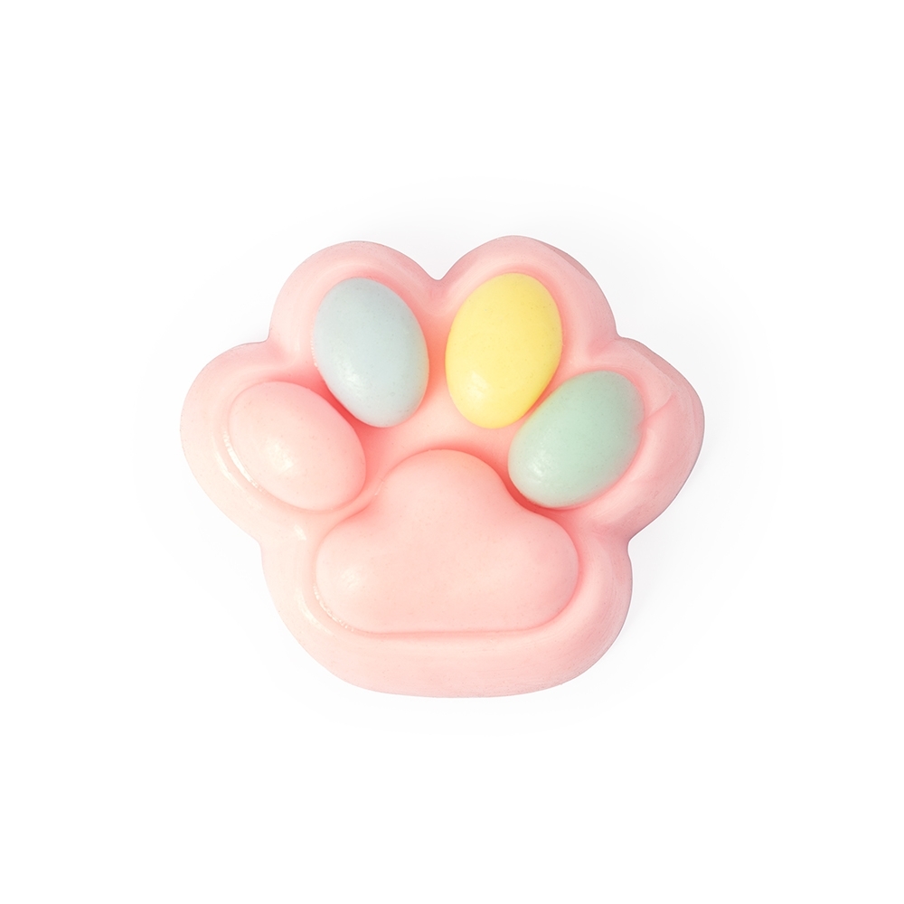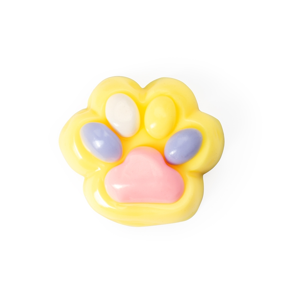 Brinquedo apertável antiestresse com formato de pata estilizada. Feito em borracha termoplástica de textura lisa, adere facilmente a superfícies planas. Acompanha bolinhas decorativas em pelúcia.