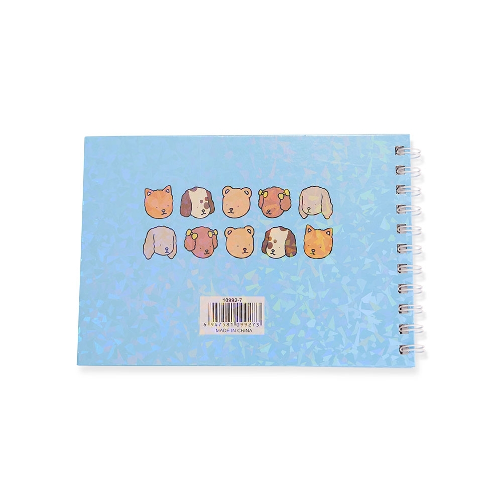 Caderno de colorir de capa dura com laminação holográfica e encadernação Wire-O. Possui aproximadamente 48 folhas com ilustrações de capivaras e outros animais em momentos leves e divertidos. Acompanha uma folha protetora destacável em acetato.