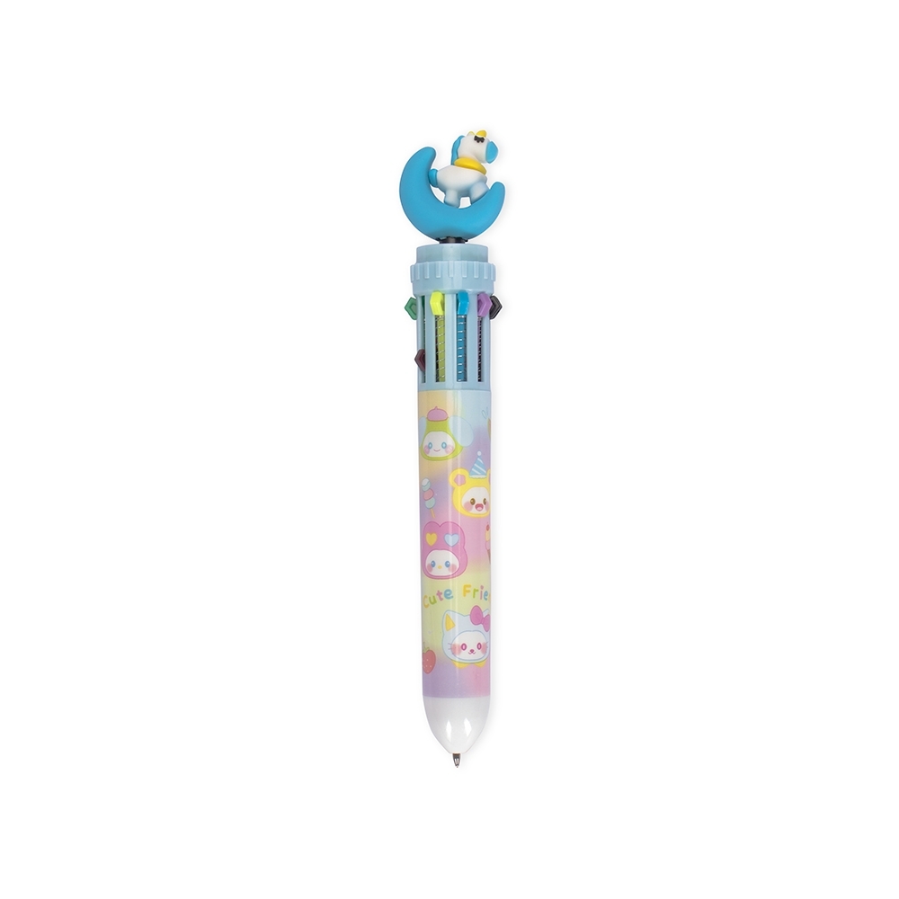 Caneta esferográfica multicolor mista com enfeite estilizado no formato de unicórnio. Possui dez cargas de 1,0mm e acionamento por clique. Sua estrutura em plástico oferece uma pegada leve para uma escrita suave.