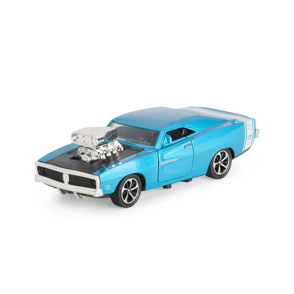 Carro miniatura com estrutura feita em metal e plástico. Com design esportivo, possui mecanismo de fricção nas rodas traseiras.