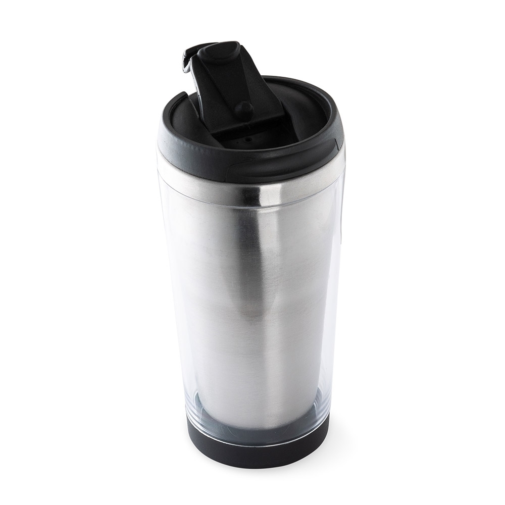 Copo 500ml porta foto, produzida em inox e com área externa em acrílico. Tampa de vedação rosqueável com abertura para consumo da bebida, possui tampa de proteção para lacre do compartimento. Área inferior possui “tampa” plástica rosqueável para manuseio e inserção da foto no copo.