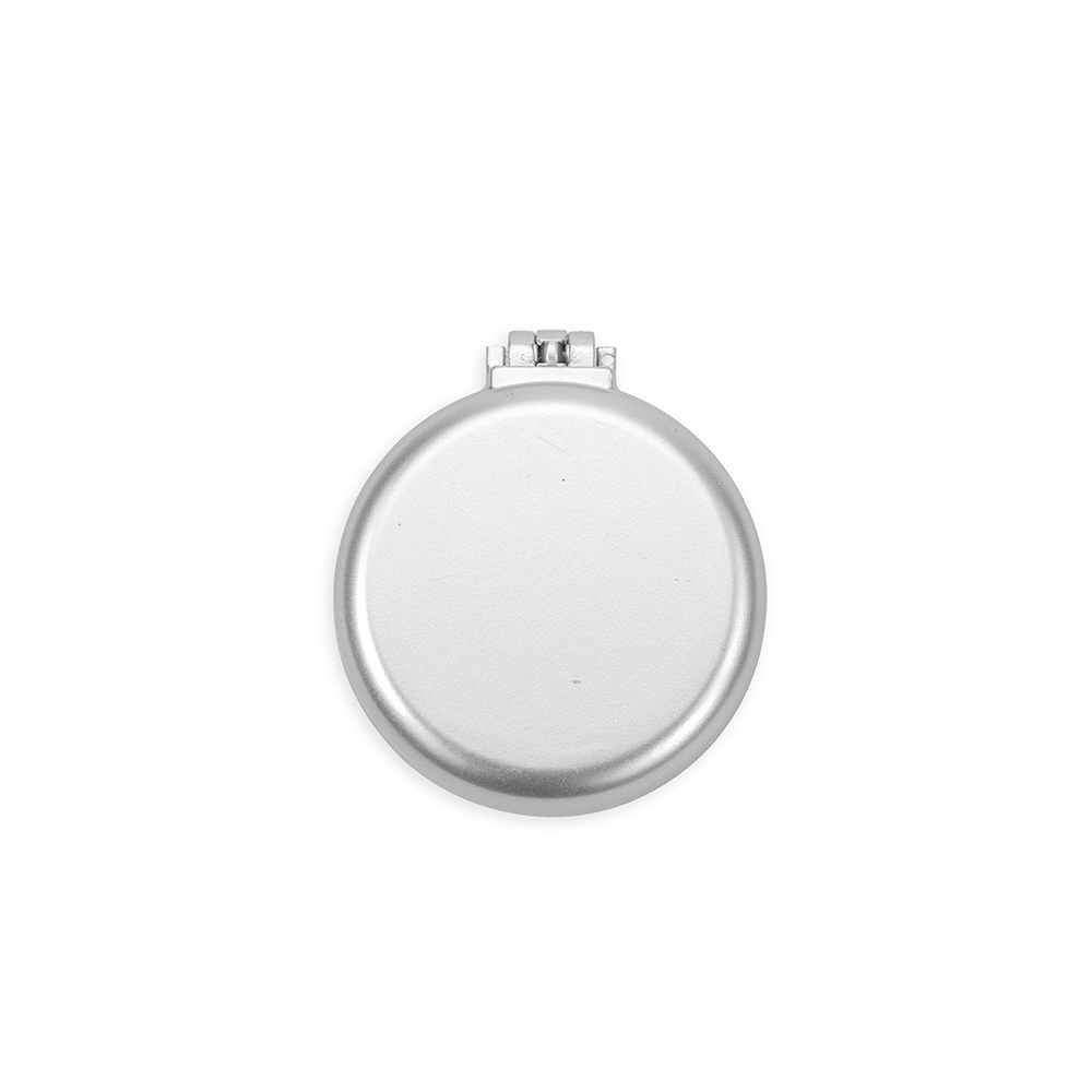 Escova com espelho redonda em plástico resistente. Parte superior plana e parte inferior emborracha com relevo, estando aberta a peça basta empurrar a parte emborrachada(lado de fora) para poder utilizar a escova.