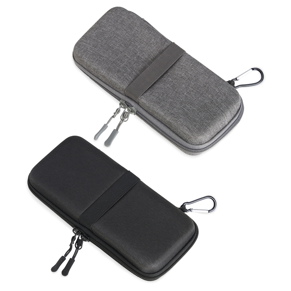 Estojo de proteção para eletrônicos, feito em nylon resistente à água. Contém bolsos de malha internamente e elásticos para fixação na área interna e externa. Acompanha mosquetão.
