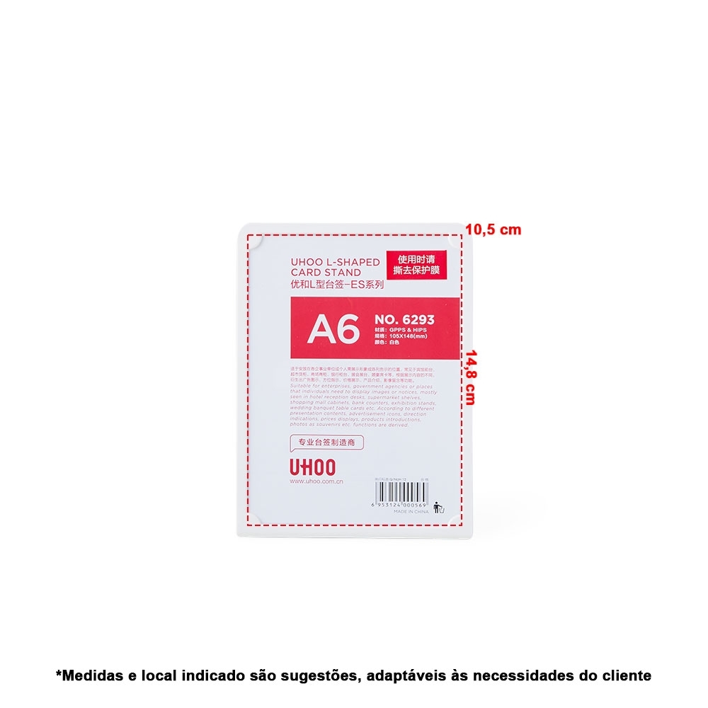 Expositor porta retrato A6 feito em poliestireno com placa acrílica.