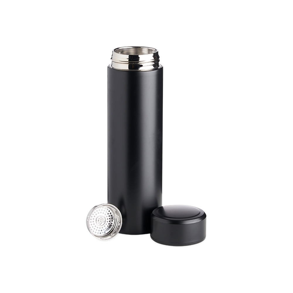 Garrafa térmica 500ml feita em aço inoxidável 304, acompanha infusor de bebidas.
