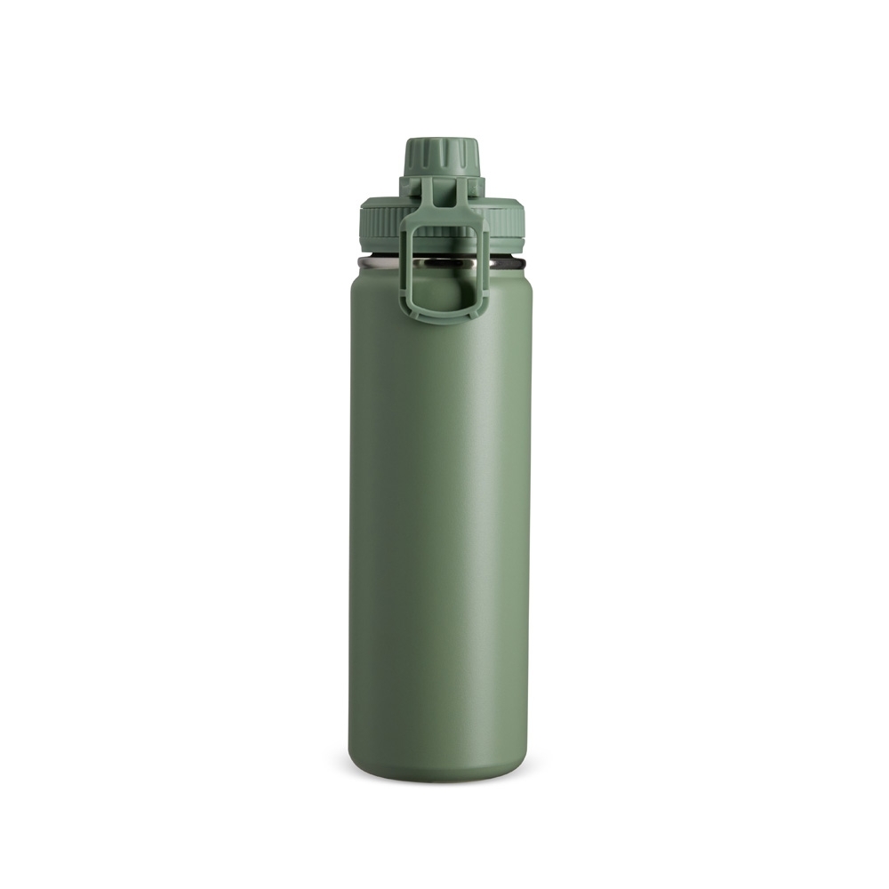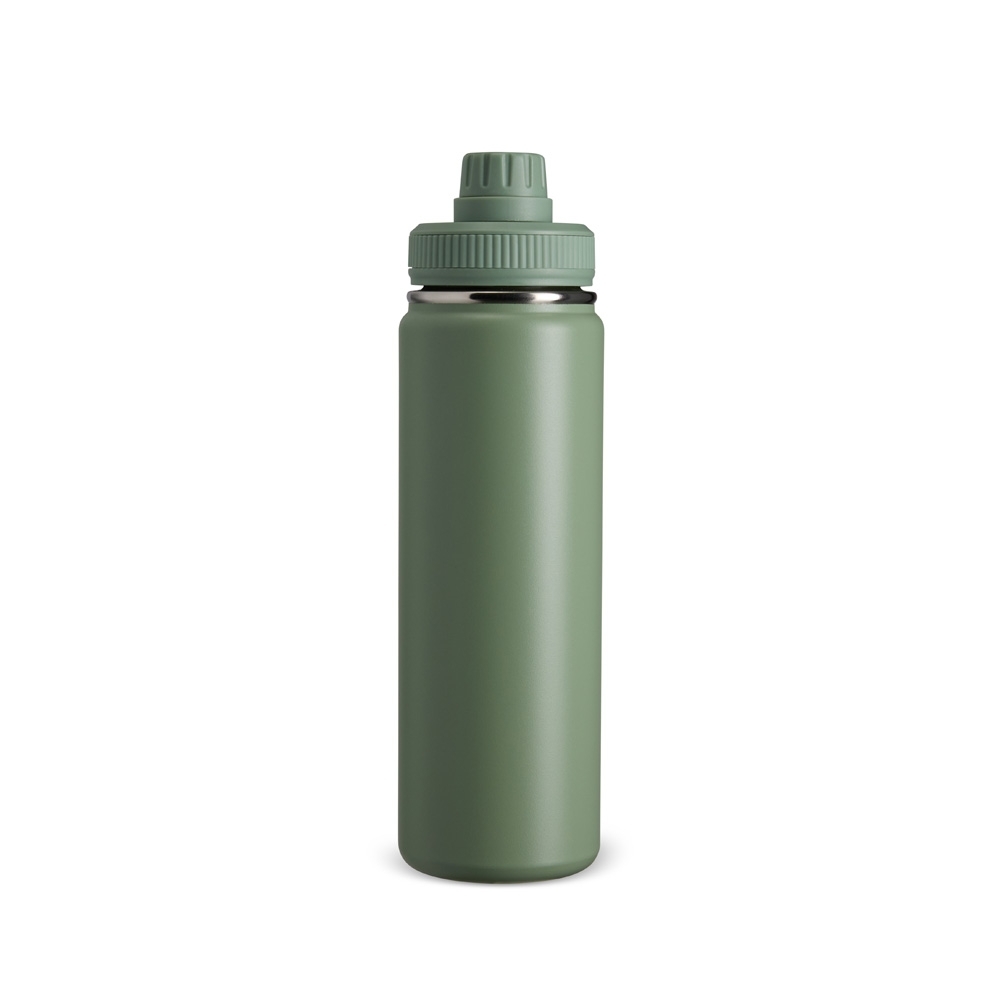 Garrafa térmica inox com capacidade de até 750ml. A pintura eletrostática garante uma cor duradoura e acabamento de maior qualidade. Sua parede dupla e isolamento à vácuo mantém o líquido conservado por mais tempo e permite o uso da garrafa sem a necessidade de se preocupar em entrar em contato direto com o calor interno ou vazamentos. Além disso, a garrafa conta com uma tampa rosqueável e uma alça que facilita o transporte para qualquer lugar.