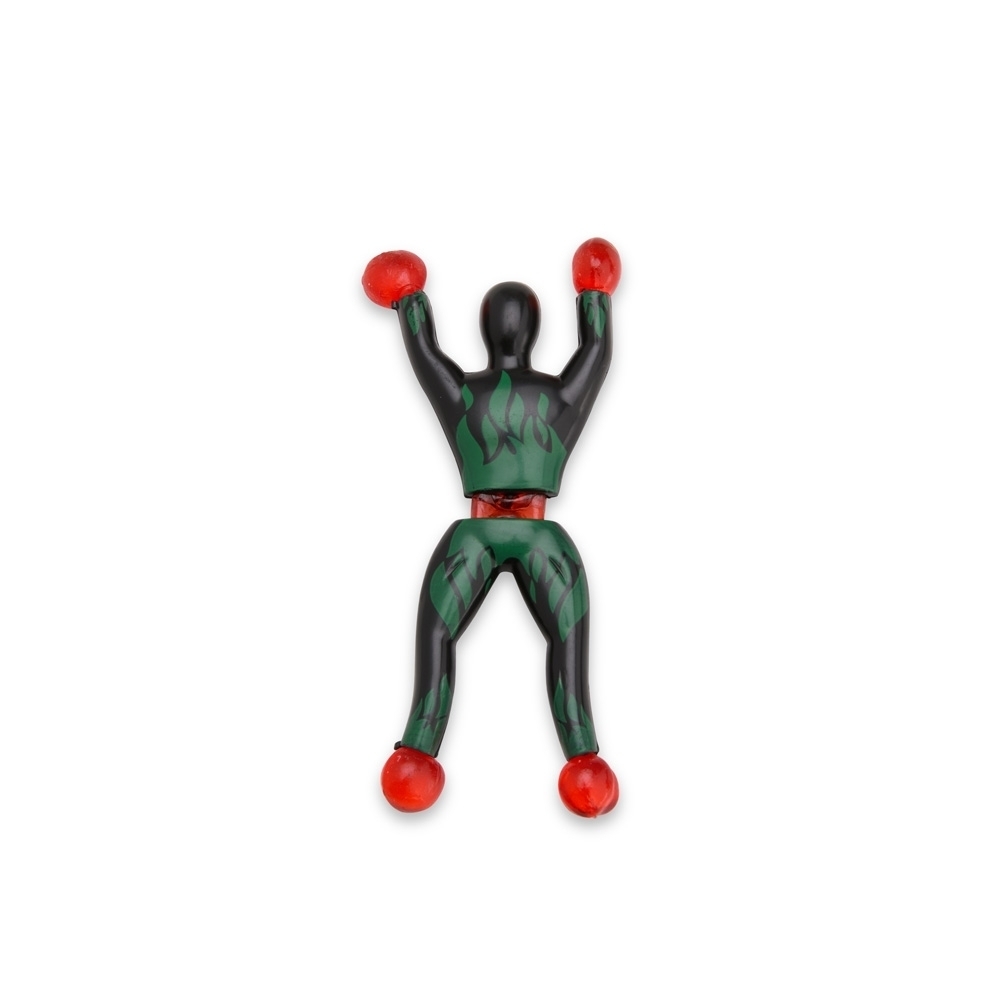 Boneco leve em plástico com design no estilo ninja. Gruda em qualquer superfície lisa, como paredes e janelas, fazendo movimentos acrobáticos durante a descida. Cada embalagem contém dois bonecos.