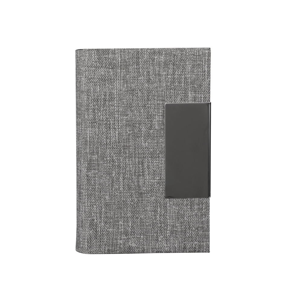 Nosso kit executivo traz praticidade e elegância para o dia a dia. Produzido com metal e tecido em rPET reciclado, ele conta com um porta-cartão com chapa metálica para gravação e um interior revestido em veludo, garantindo sofisticação. A caneta esferográfica azul, com acionamento por rotação, é ideal para anotações rápidas, e o chaveiro é a solução perfeita para manter suas chaves sempre organizadas. Todos esses itens são acomodados em um estojo de papelão com abertura pela lateral, perfeito para presentear ou guardá-los com cuidado.