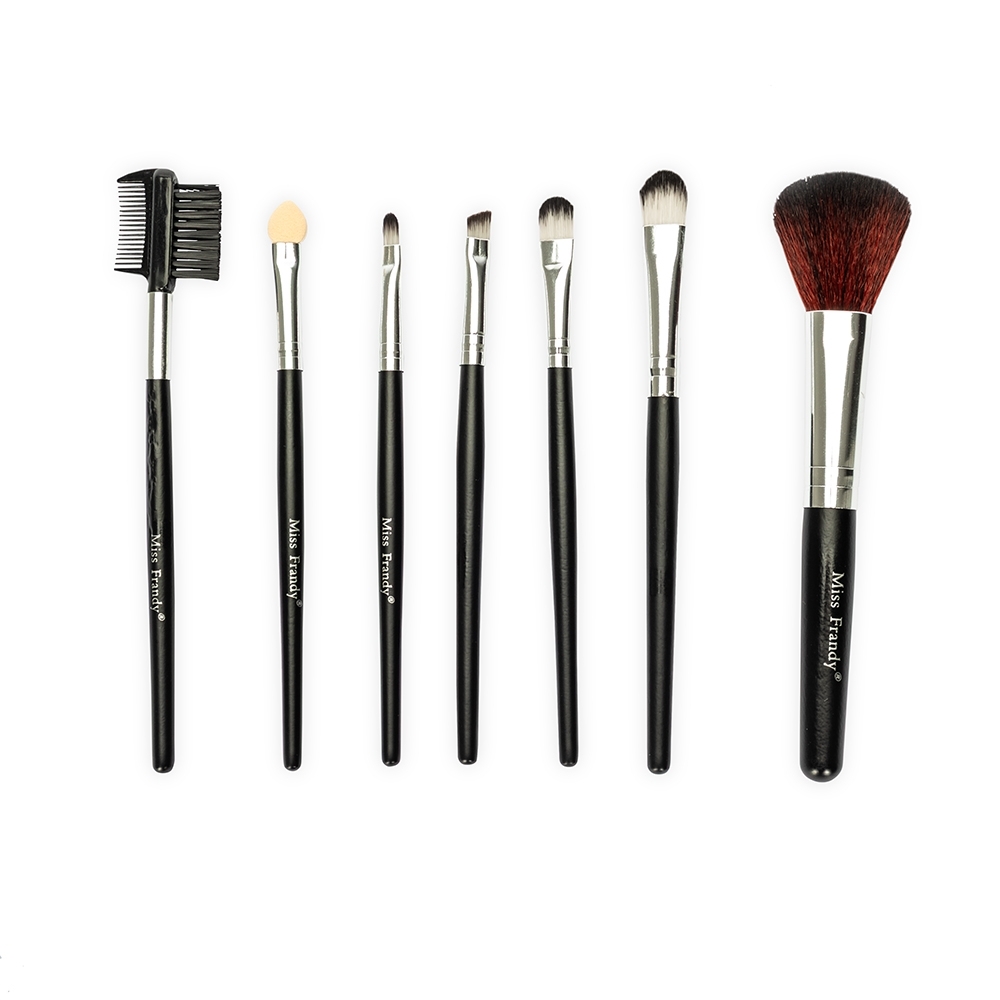Kit com sete pincéis de tamanho compacto e cerdas sintéticas macias. O conjunto inclui, além de um pente-escova, pincéis dedicados para a aplicação de sombra, delineador, corretivo e iluminador. Acompanha nécessaire dobrável com bolso interno em tela de nylon e fechamento por botão magnético.
