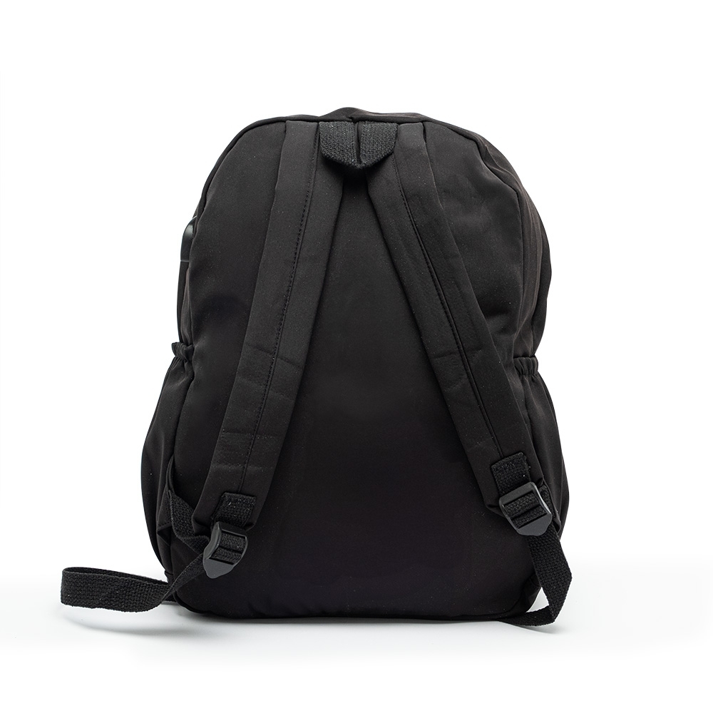 Mochila de poliéster de 24 litros com dois compartimentos, sendo o principal com um bolso raso para notebook de até 15,6 polegadas. A mochila possui um adaptador USB externo e quatro bolsos: dois laterais com elástico, um com velcro e um com cordão ajustável.
