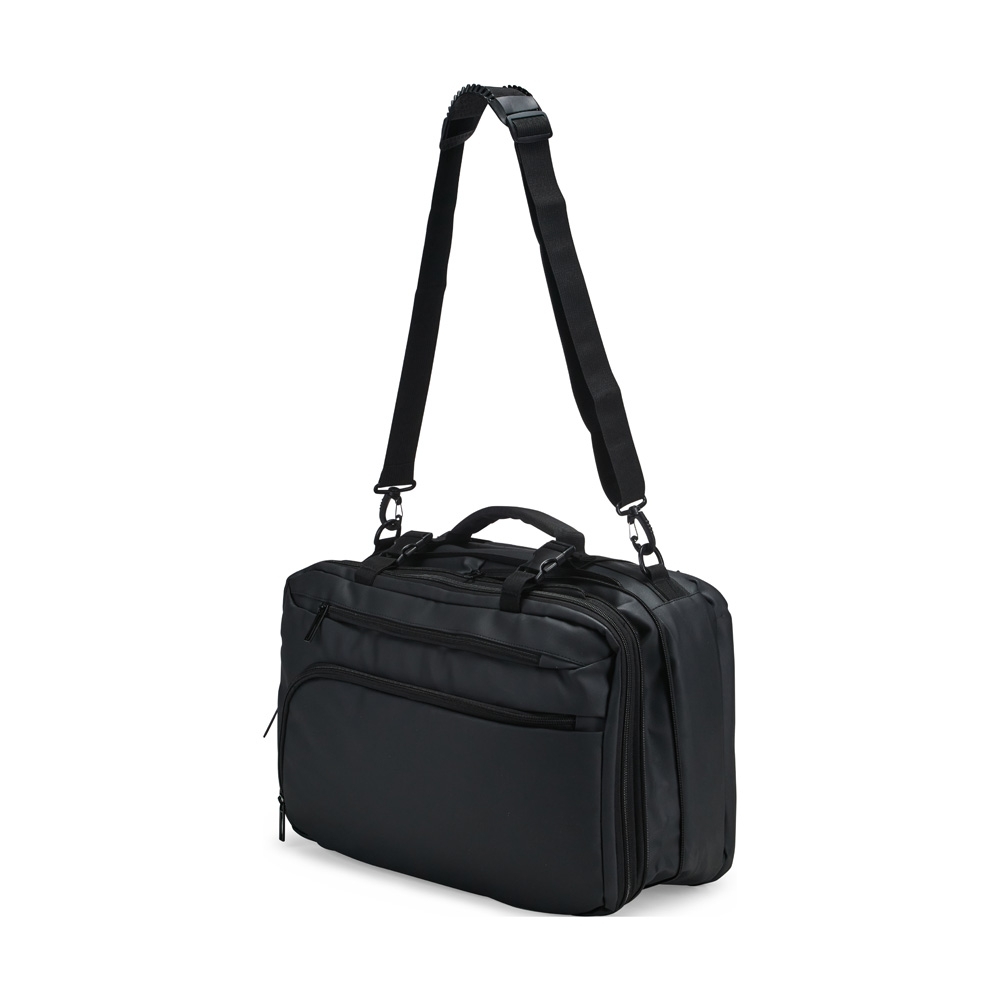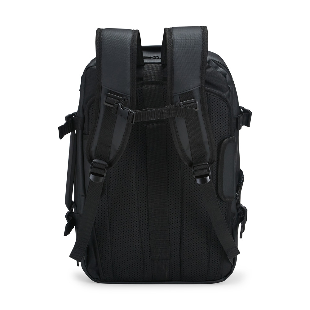 Mochila em nylon com uma camada de PU impermeável com capacidade máxima de 28 litros. Conta com abertura expansível e fivelas laterais ajustáveis para melhor aproveitamento do espaço interno. Possui compartimento principal em poliuretano termoplástico e duas divisórias de tamanhos distintos, além de bolsos frontais, um lateral em tela e outro traseiro com divisória para notebook de até 15,6 polegadas. Traz alças acolchoadas em espuma respirável, alça lateral para transporte vertical e alça de ombro ajustável em nylon.