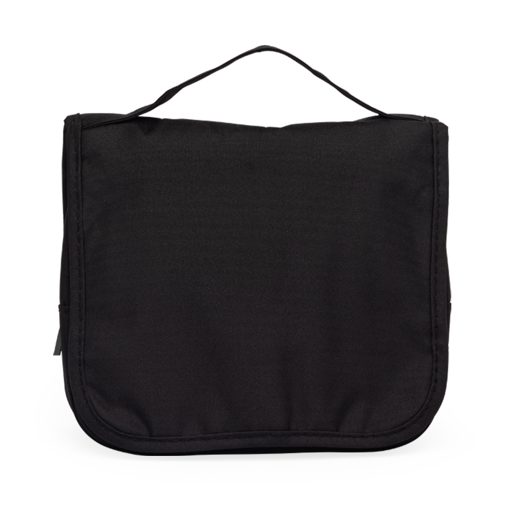 Nécessaire confeccionado em Nylon Oxford resiste à água. Possui compartimento principal com visor em tela de nylon e outros dois em formatos distintos: um em PVC com fechamento em zíper e outro em tela respirável de nylon. Conta ainda com gancho plástico para manter a bolsa pendurada enquanto aberta.