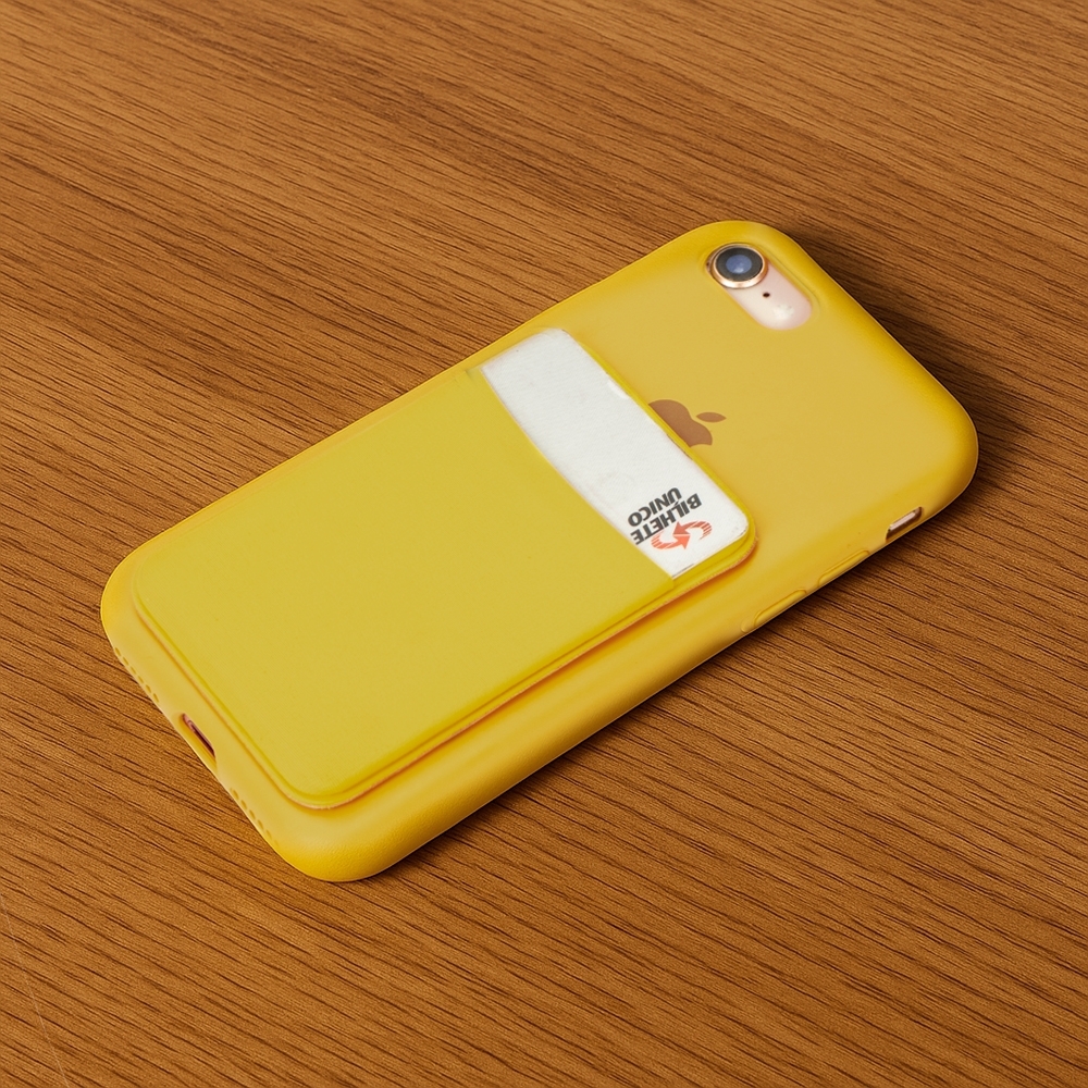 Bolso adesivo para fixação na capa de smartphones. Produzido em lycra, acomoda cartões com facilidade.