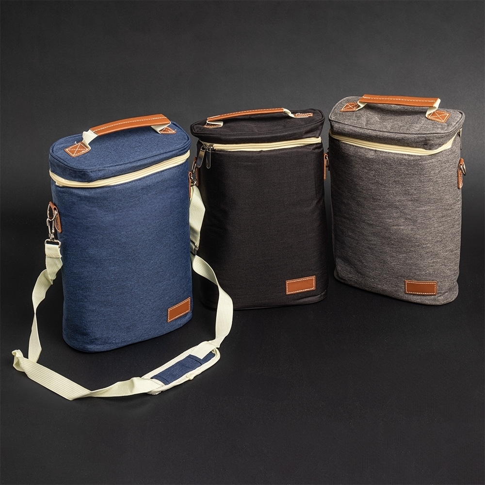 Bebidas geladinhas e frescas por muito mais tempo! O nosso porta-garrafas térmico é excelente para garantir a temperatura das bebidas em qualquer lugar. Feito em nylon com detalhes em couro sintético, contém divisória integrada à bolsa. Ele comporta até duas garrafas e ainda conta com um suporte para abridor ou outros acessórios. Além disso, vem com alça de mão e alça de ombro ajustável e removível para maior conforto e praticidade. E para torná-lo ainda mais especial, oferece espaço para personalização, deixando-o único e exclusivo.