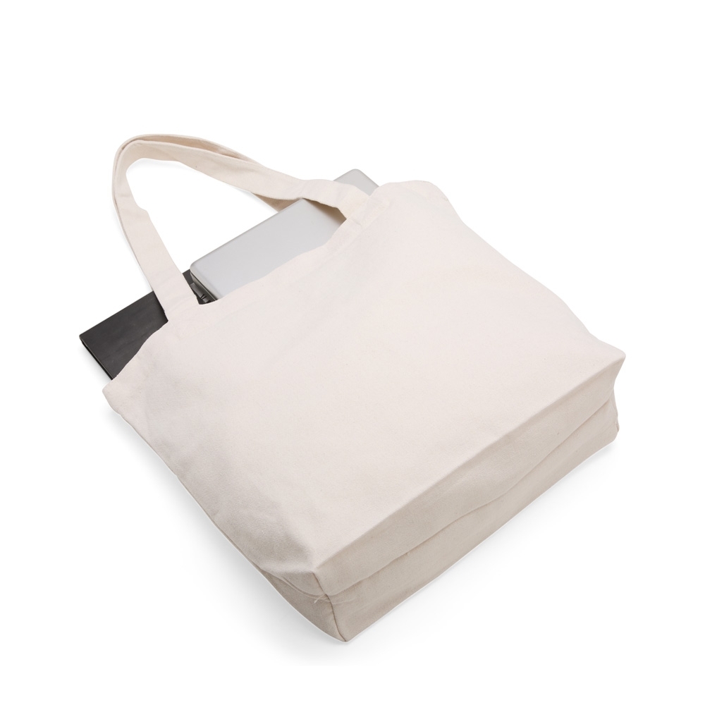 Sacola confeccionada em lona resistente a respingos dágua. Possui duas alças fixadas por costura interna.