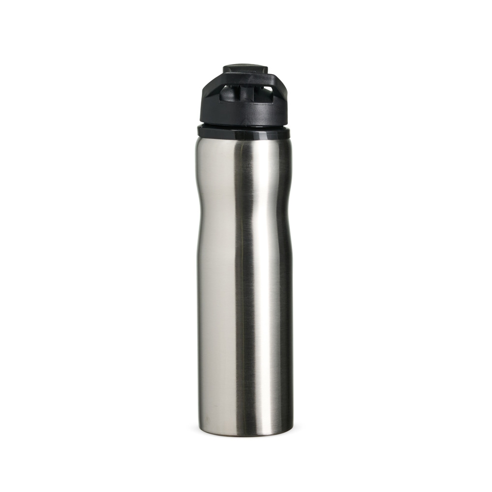 Squeeze feito em inox com 750ml. Possui tampa plástica, bocal com tampa protetora e alça para transporte. Este brinde será o parceiro de atividades físicas perfeito.