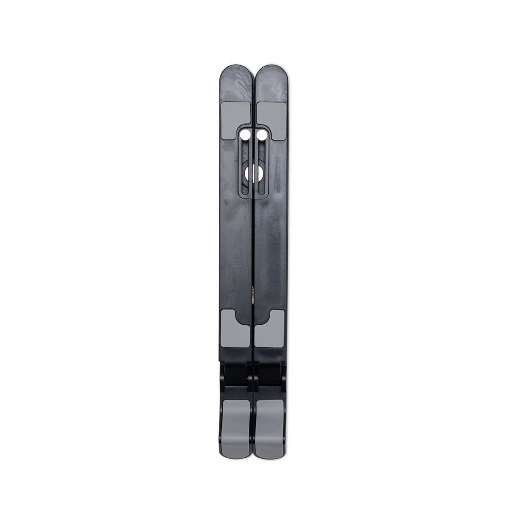 Suporte para notebooks retrátil em plástico resistente. Conta com design aberto para facilitar a dissipação de calor, sete níveis de ajuste para aparelhos de até 15,6 polegadas e tiras de silicone laterais que garantem maior estabilidade ao dispositivo.