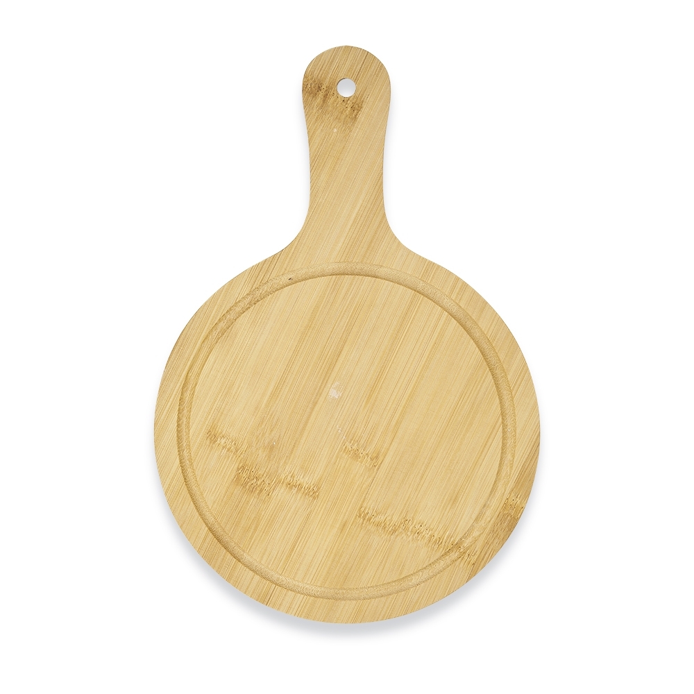 Tábua de bambu pequena com canaleta e cabo.