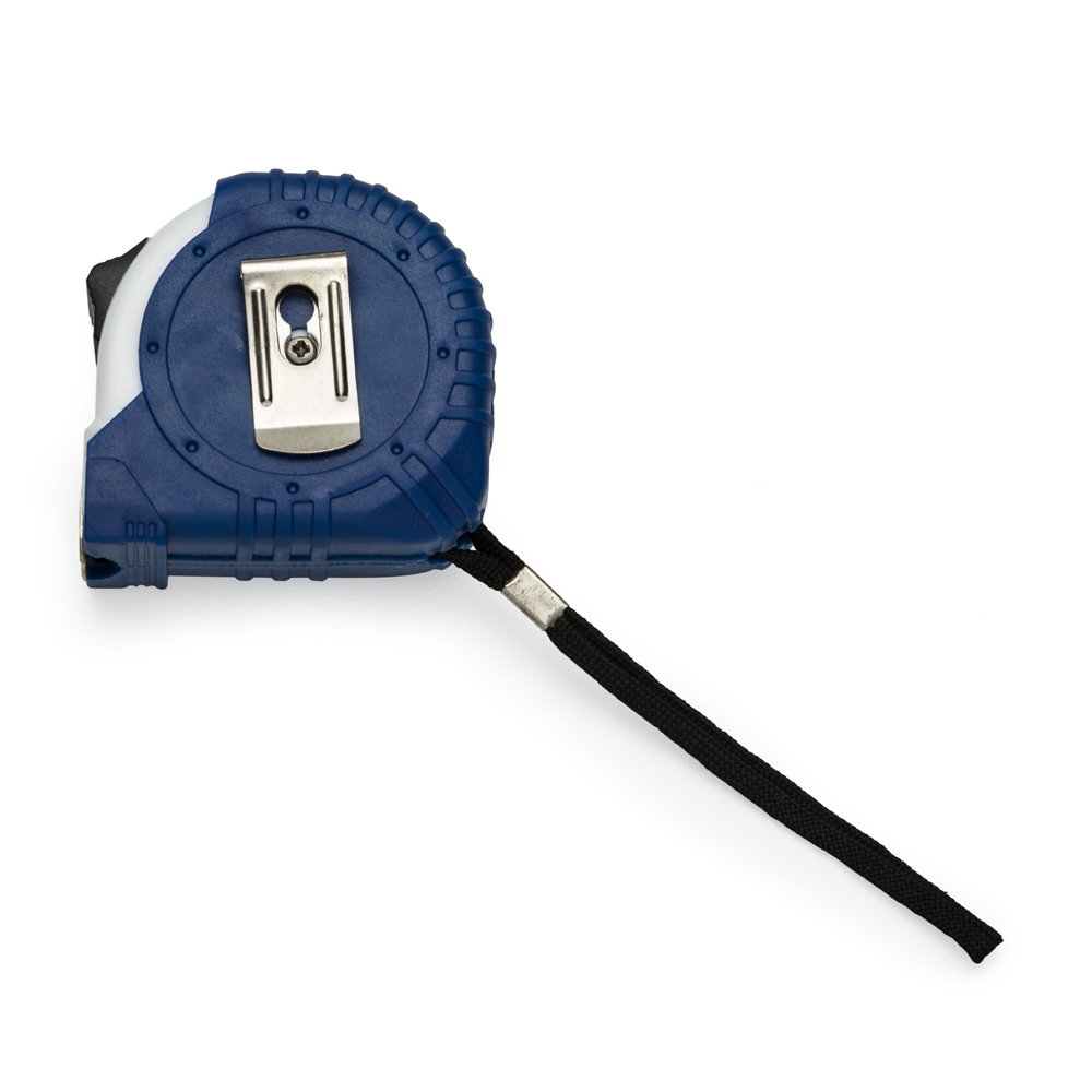 Descrição: Trena de 5 metros colorida emborrachada com relevo e detalhe plástico branco. Possui trava, prendedor de metal em um dos lados e acompanha cordão de nylon.