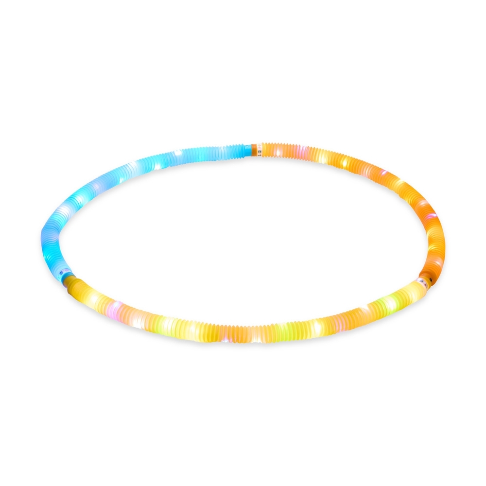 Tubo sanfonado em plástico com três níveis de iluminação em LED e rosqueamento que permite a conexão com outros tubos compatíveis.